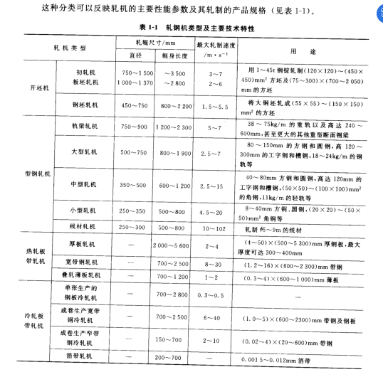 這種分類可以反映軋機(jī)的主要性能參數(shù)及其軋制的產(chǎn)品規(guī)格(見表1-2)