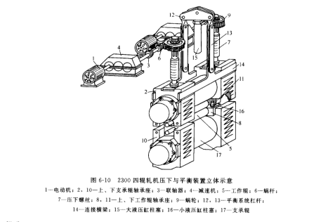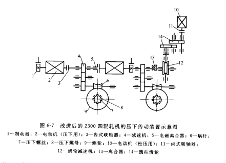 軋機的壓下裝置采用雙電機驅(qū)動的原因是; 電動機飛輪力矩小,相應(yīng)的啟動、制動時間短,故可縮短壓下調(diào)整時間。