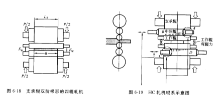 為了消除 A 區(qū)的有害作用,較簡(jiǎn)單的方法是將支承輥制成雙階梯形,使工作輾與支承輥在 A 區(qū)脫離接觸,如圖 6-18 所示。但軋制不同寬度的板帶時(shí),需要頻繁換輥來(lái)改變輥間接觸寬度 LB,或者把支承輥?zhàn)龀煽奢S向移動(dòng)的,但支承輥較大,移動(dòng)裝置也需要大型設(shè)備,在一般條件下不易實(shí)現(xiàn)。為此發(fā)明了中間輥可